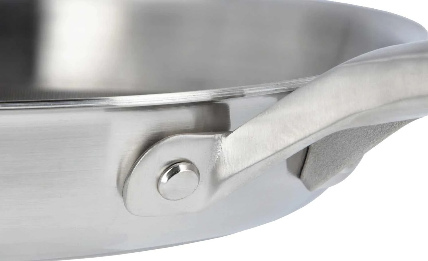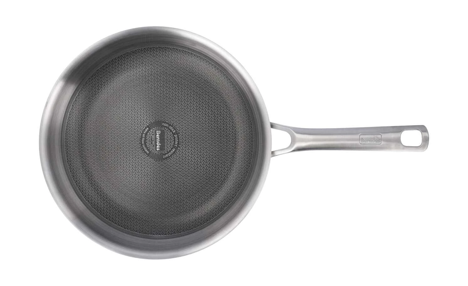 Besonderes 3-Schicht-Material bestehend aus Edelstahl, Aluminium und Edelstahl. Leitet die Hitze superschnell weiter und garantiert eine lange Lebensdauer. Einzigartige Antihaftversiegelung mit erhabenem Schutzgitter zur Nutzung von Metall-Küchenhelfern sowie „easy oil flow system“ zur perfekten Ölverteilung beim Kochen. Wärmeisolierter Edelstahl-Stiel für perfekte Handhabung.