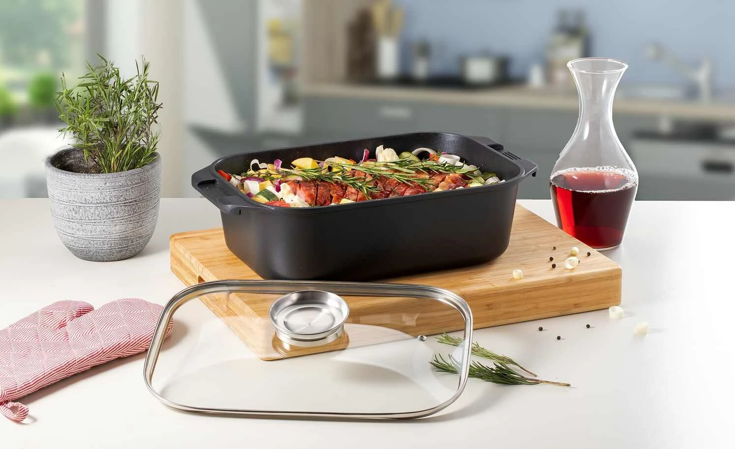 - Mehr zu Ausstattung / Funktion: backofenfest (Deckel bis 180°C), mit Aromaknopf, spülmaschinengeeignet