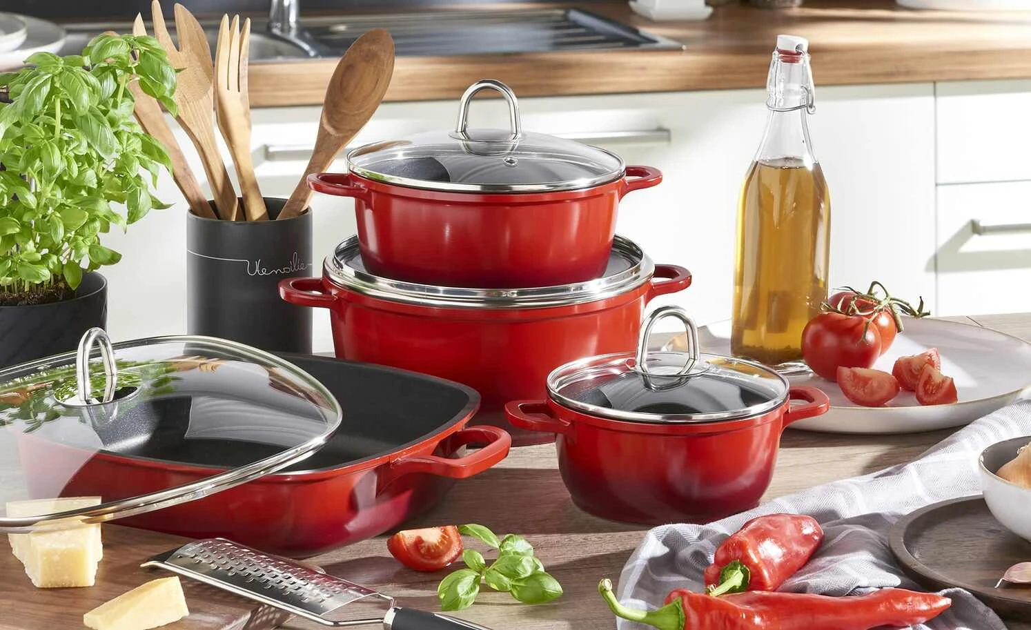 ZUr Neueinrichtung einer Küche eigent sich ein Kochset besonders. Das Set Verona besteht aus drei Kochtöpfen mit 16, 20 und 24cm und
