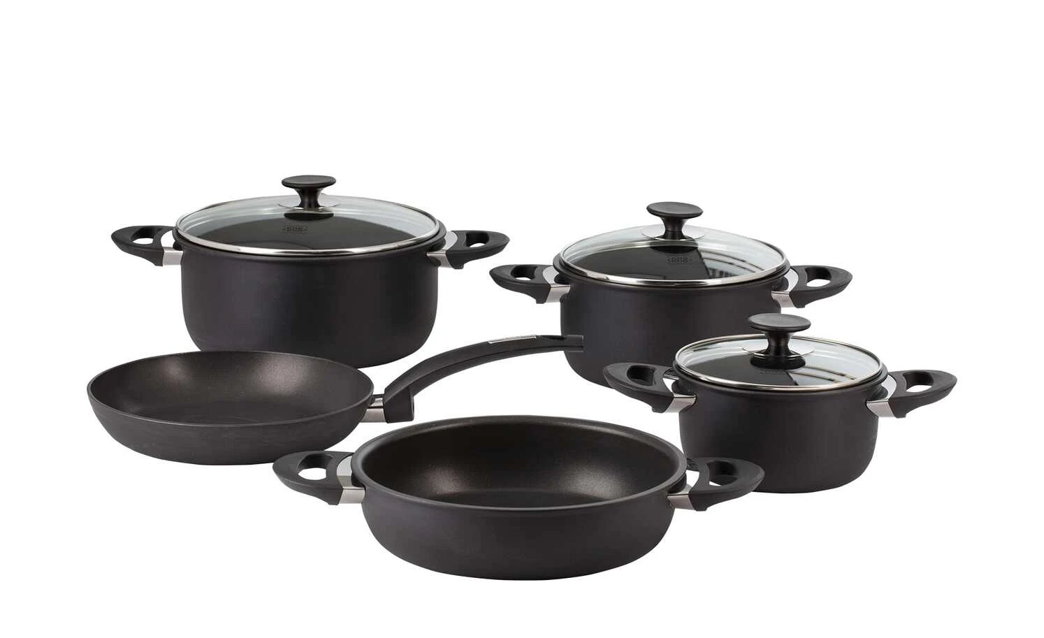 - Lieferumfang / mitgeliefertes Zubehör: Kochtopf Ø 20cm, Kochtopf Ø 16cm, Servierpfanne Ø 24cm, Bratpfanne Ø 28cm, Kochtopf Ø 24cm