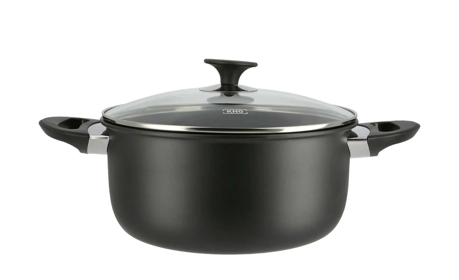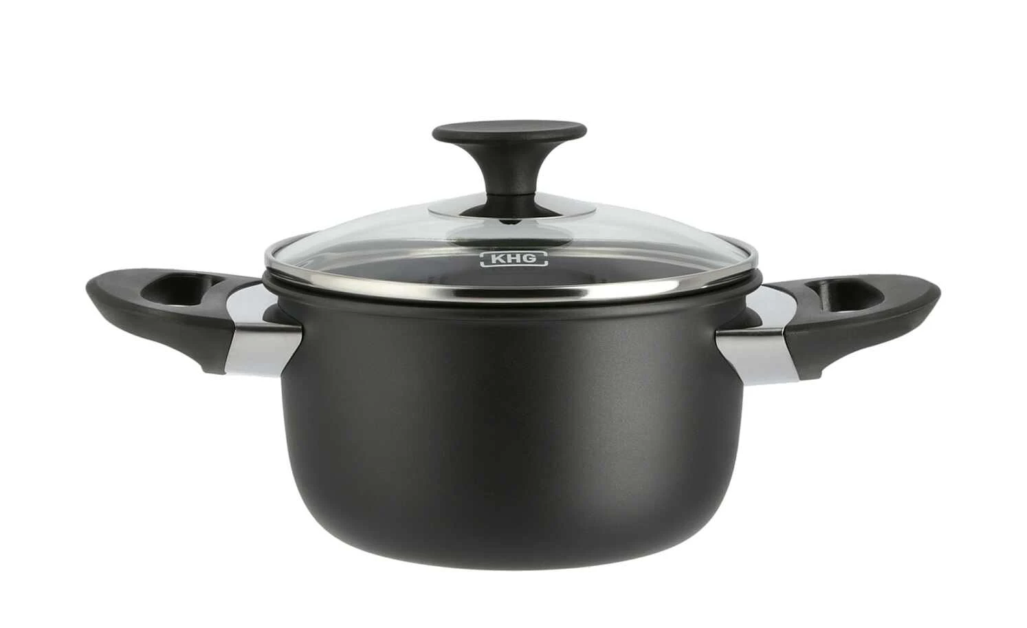 - Glasdeckel mit edlem schwarzen Knopf und Dampfloch
