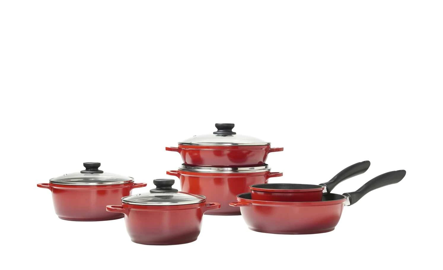 - Lieferumfang / mitgeliefertes Zubehör: 2 Deckel Ø 24 cm, 1 Kochtopf Ø 24×11,5 cm, 1 Kochtopf Ø 20×9,2 cm, 1 Kochtopf Ø 16×8,1 cm, 1 Servierpfanne Ø 24×7,7 cm, 1 Stielkasserolle Ø 16×7,4 cm, 1 Deckel Ø 16 cm, 1 Deckel Ø 20 cm, 1 Schmorpfanne H 24×7,6 cm
