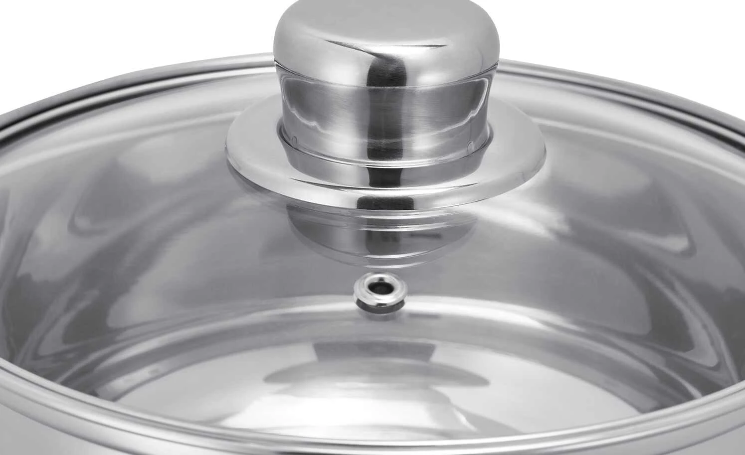 - Edelstahltöpfe mit Glasdeckel mit Dampfloch