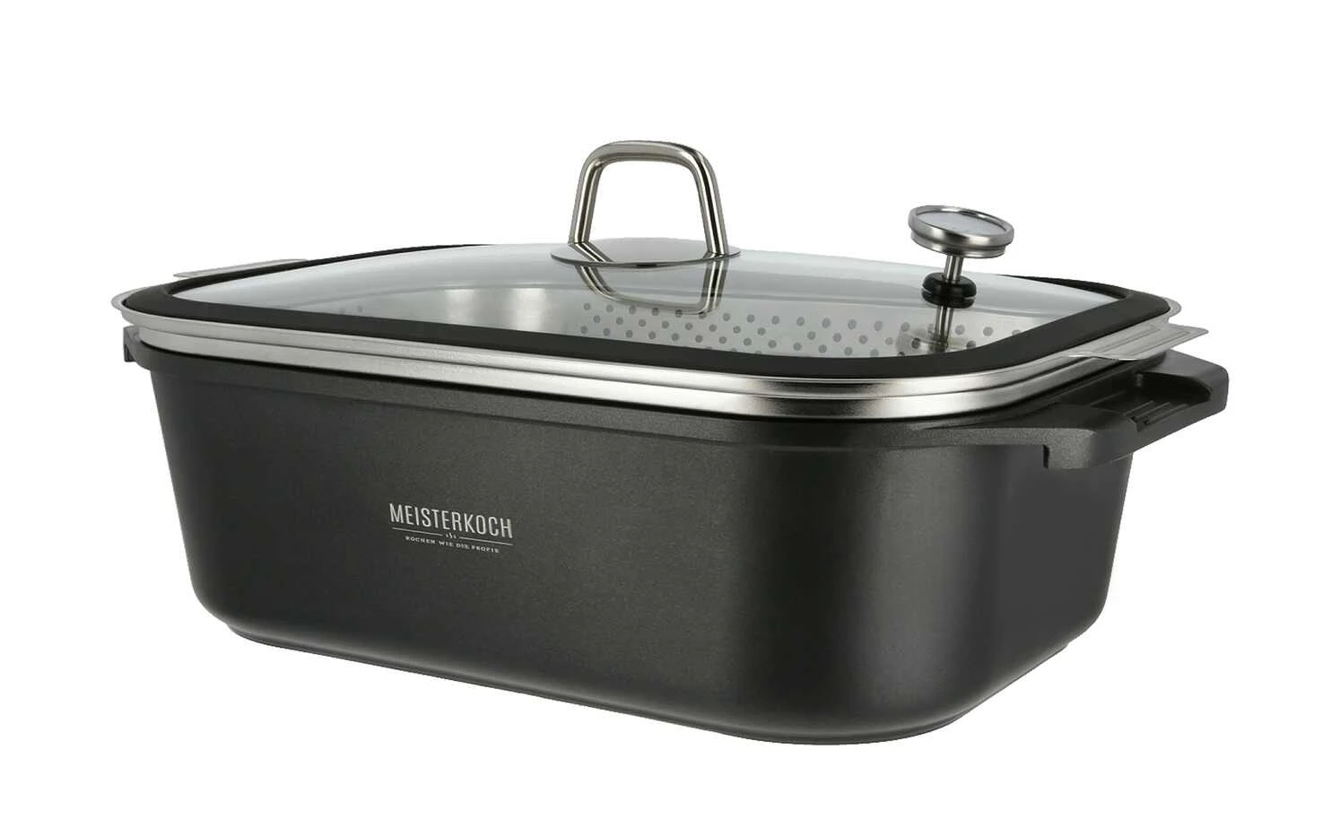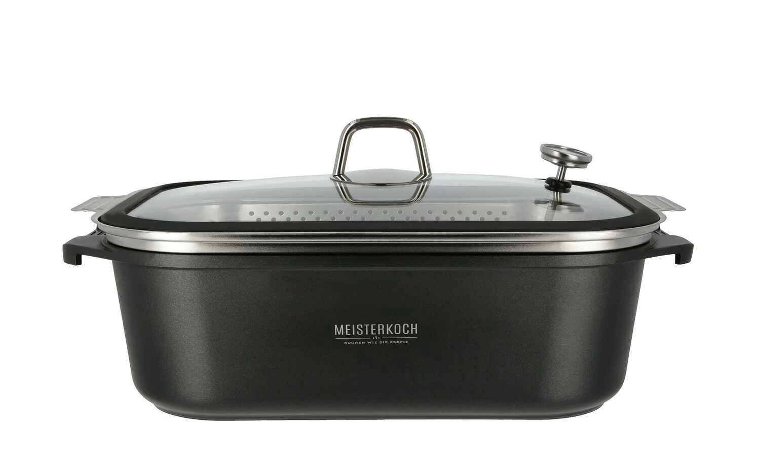 - Lieferumfang / mitgeliefertes Zubehör: Glasdeckel, Bratenthermometer, Edelstahl-Dämpfeinsatz