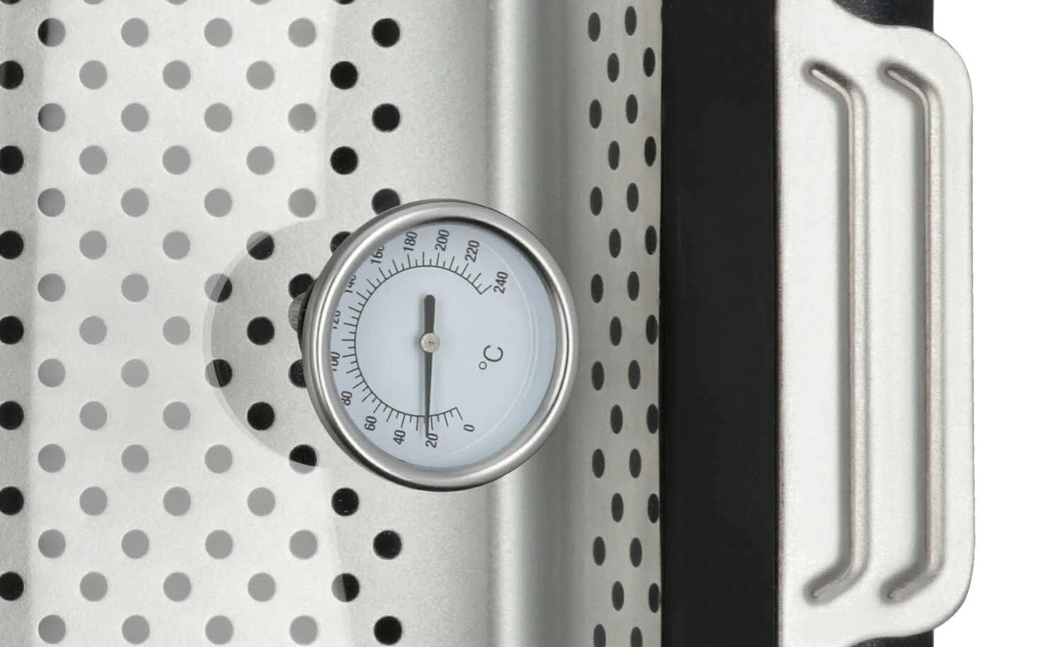 - Mehr zu Ausstattung / Funktion: Backofen geeignet bis 250°C, außer der Glasdeckel, dieser ist nur bis 180°C im Backofen geeignet, Bratenthermometer mit Anzeige bis 240°C
