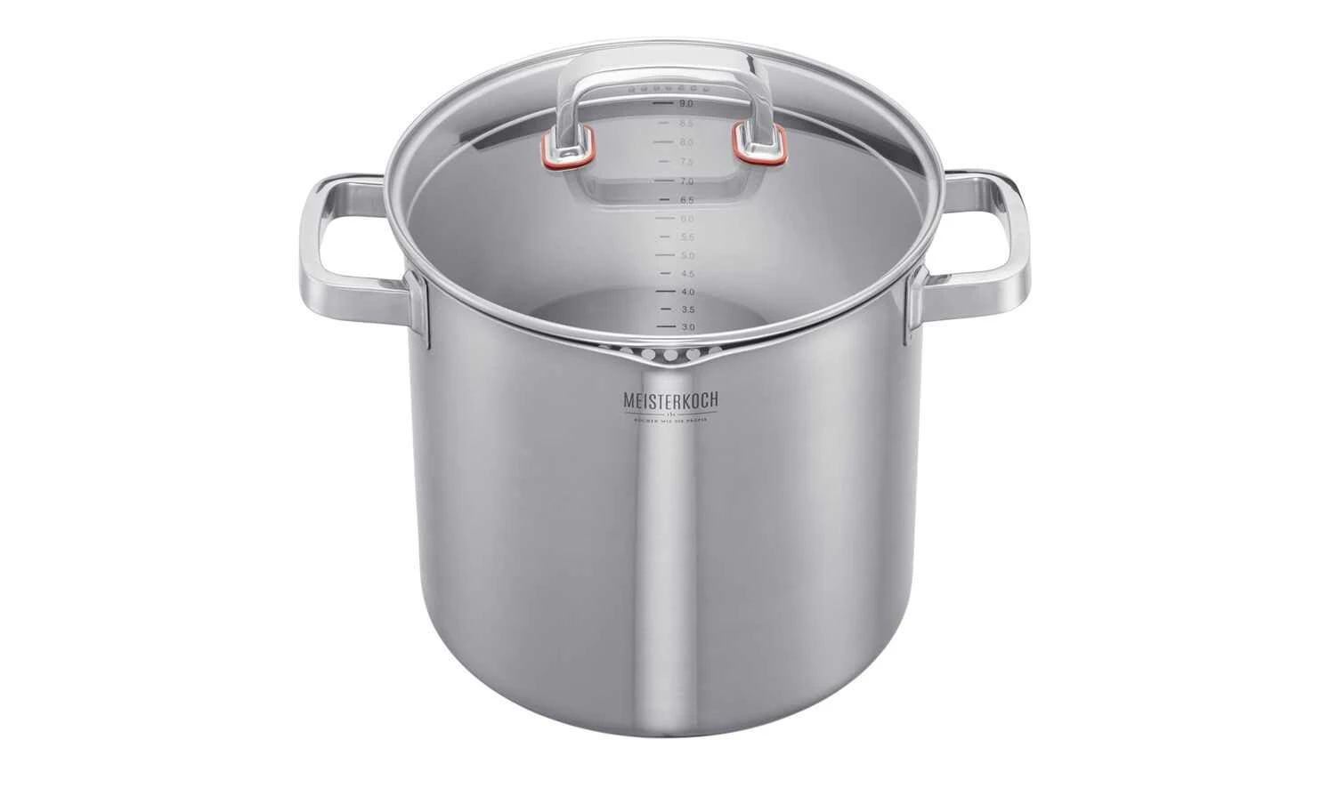 Hier wird jeder satt: Ganze 10 Liter finden im Gemüsetopf der Serie Focus Platz. Im Inneren des Edelstahl-Topfes findest Du eine gut sichtbare Innenskalierung. An den zwei seitlichen Kaltgriffen kannst Du dank der Ausgießnase überschüssiges Wasser ganz einfach ausgießen. Besonders praktisch: Der mitgelieferte Glasdeckel sinkt ein Stück in den Topf ein und hat integrierte Sieblöcher in zwei verschiedenen Durchmessern. So bleibt Dein Essen beim Ausgießen sicher im Gemüsetopf zurück.