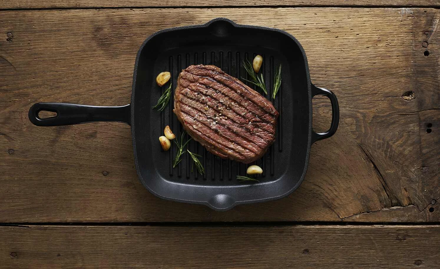 Steaks mit wunderbaren Grillstreifen gelingen mit dieser Grillpfanne. Das Gusseisen sorgt für die optimale Temperatur und lässt sich schnell aufheizen, die Grillrippen sorgen für das Ablaufen des Fleischsaftes, sodass das Fleisch eine wunderbare Kruste bekommt. Einfach perfekt…