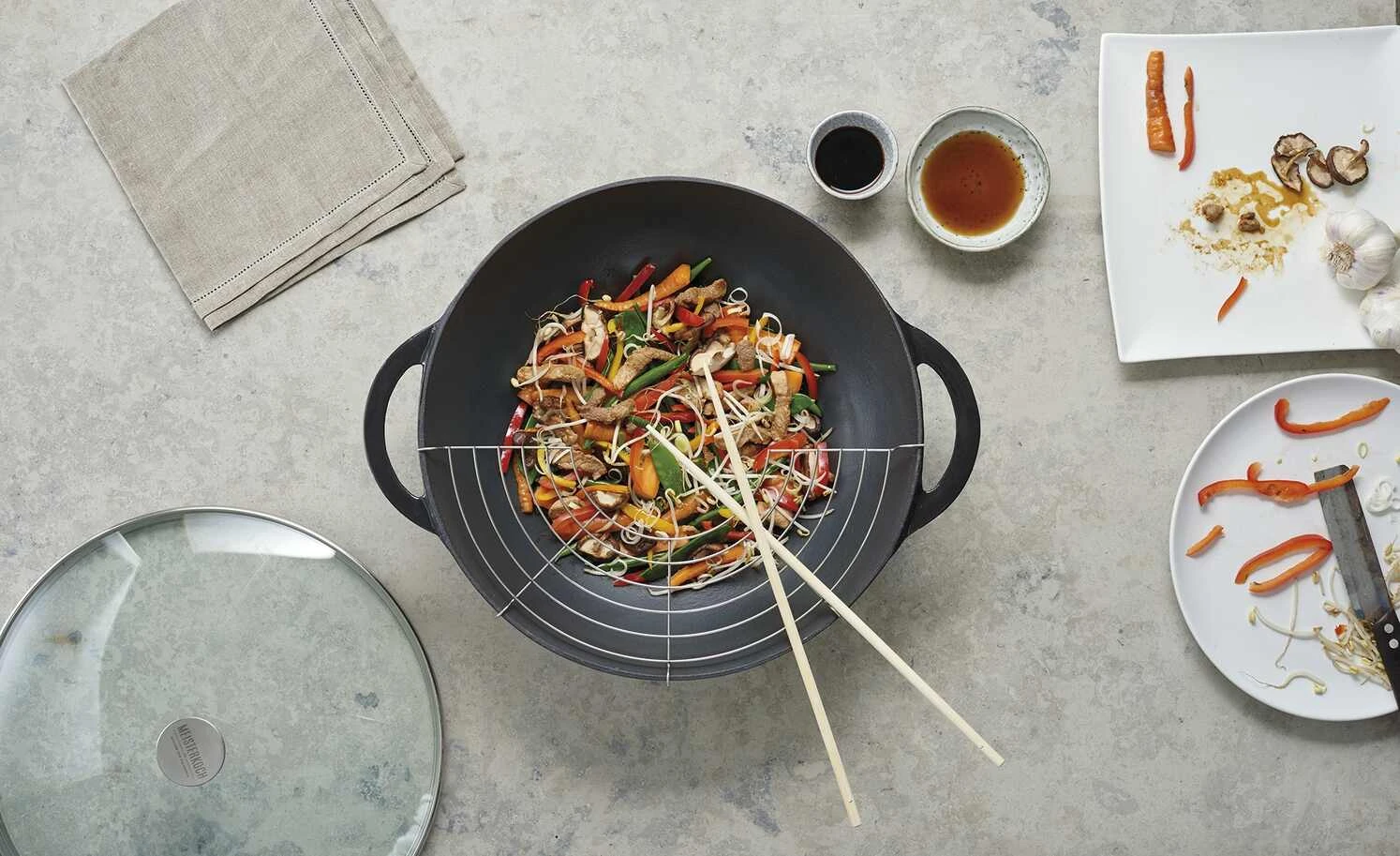 Meisterkoch Gusseisen-Wok mit Deckel OPUS