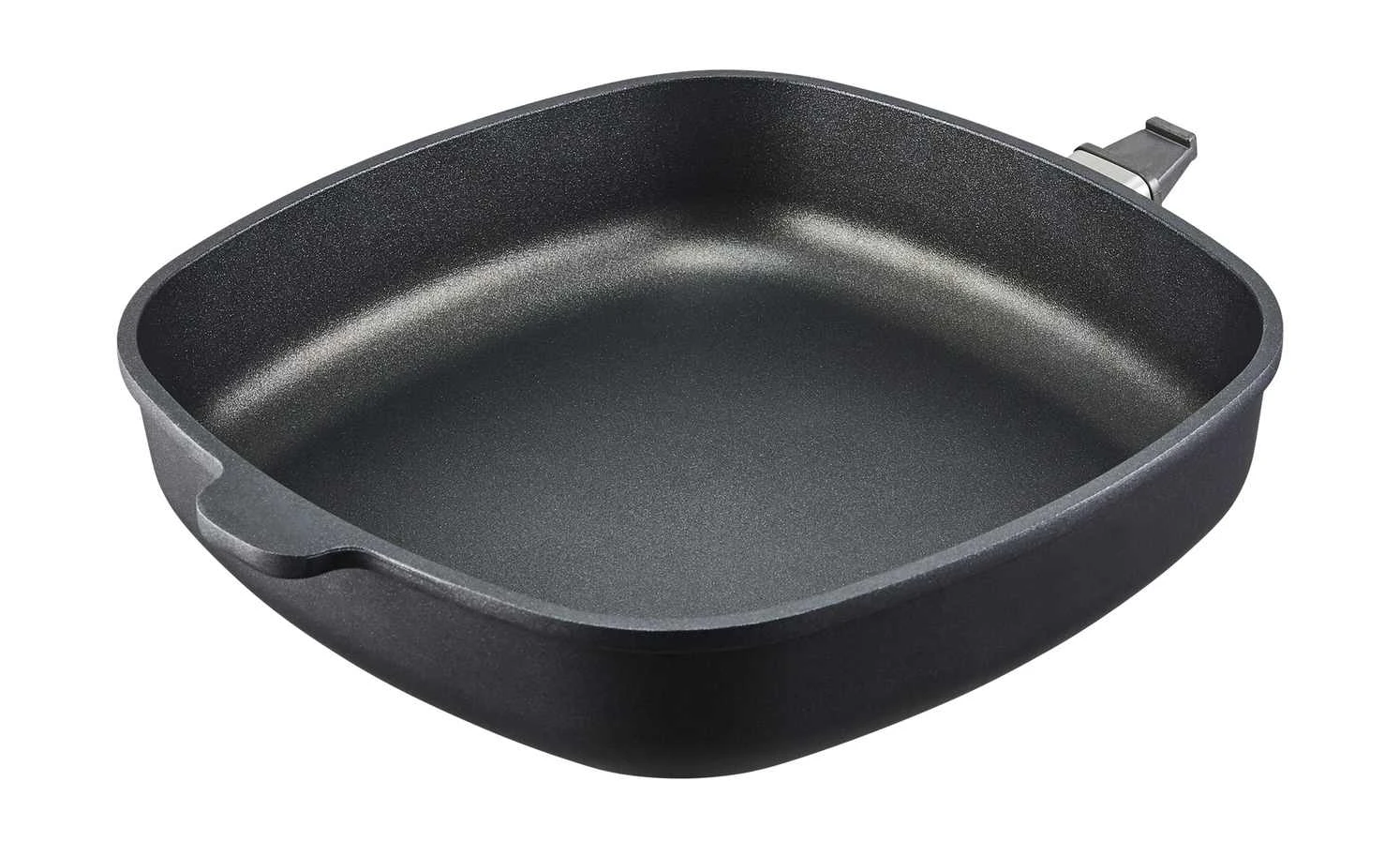 Durch die eckige Form bietet die Pfanne viel Platz um für die ganze Familie zu kochen. Schnitzel und Bouletten gelingen genauso wie Gemüsepfannen.