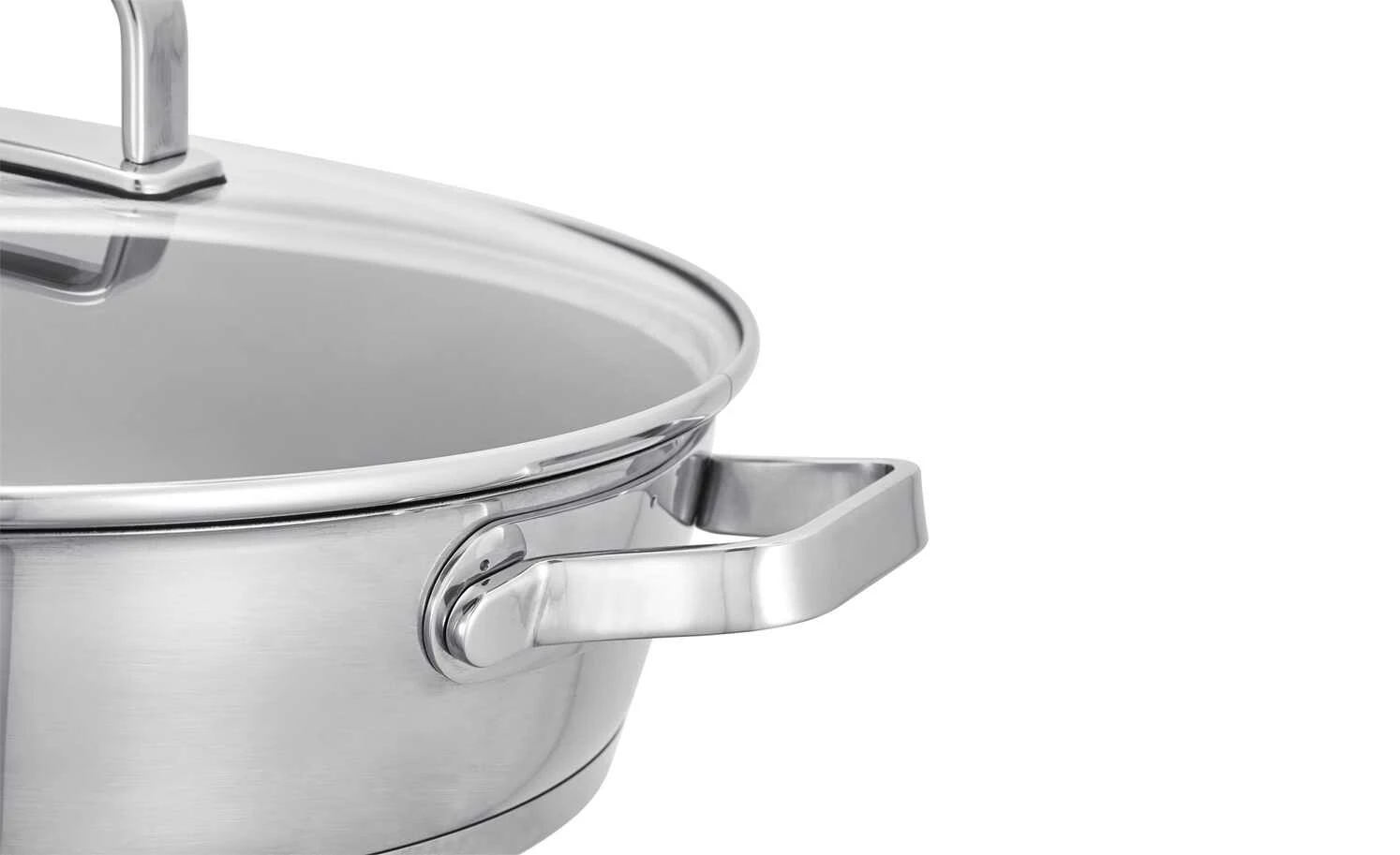 Die Servierpfanne stellt einen echten Hingucker in jeder Küche dar. Sie gibt die Möglichkeit, Mahlzeiten direkt vom Herd auf den Tisch zu servieren. Durch den hohen Rand lassen sich auch Eintöpfe und One- Pot- Gerichte prima darin zubereiten.