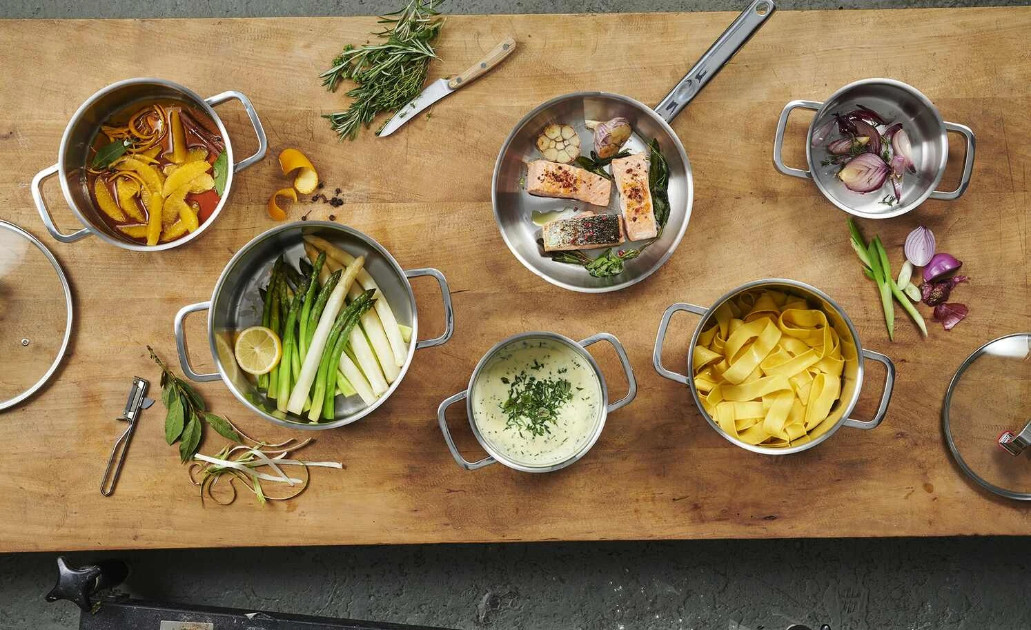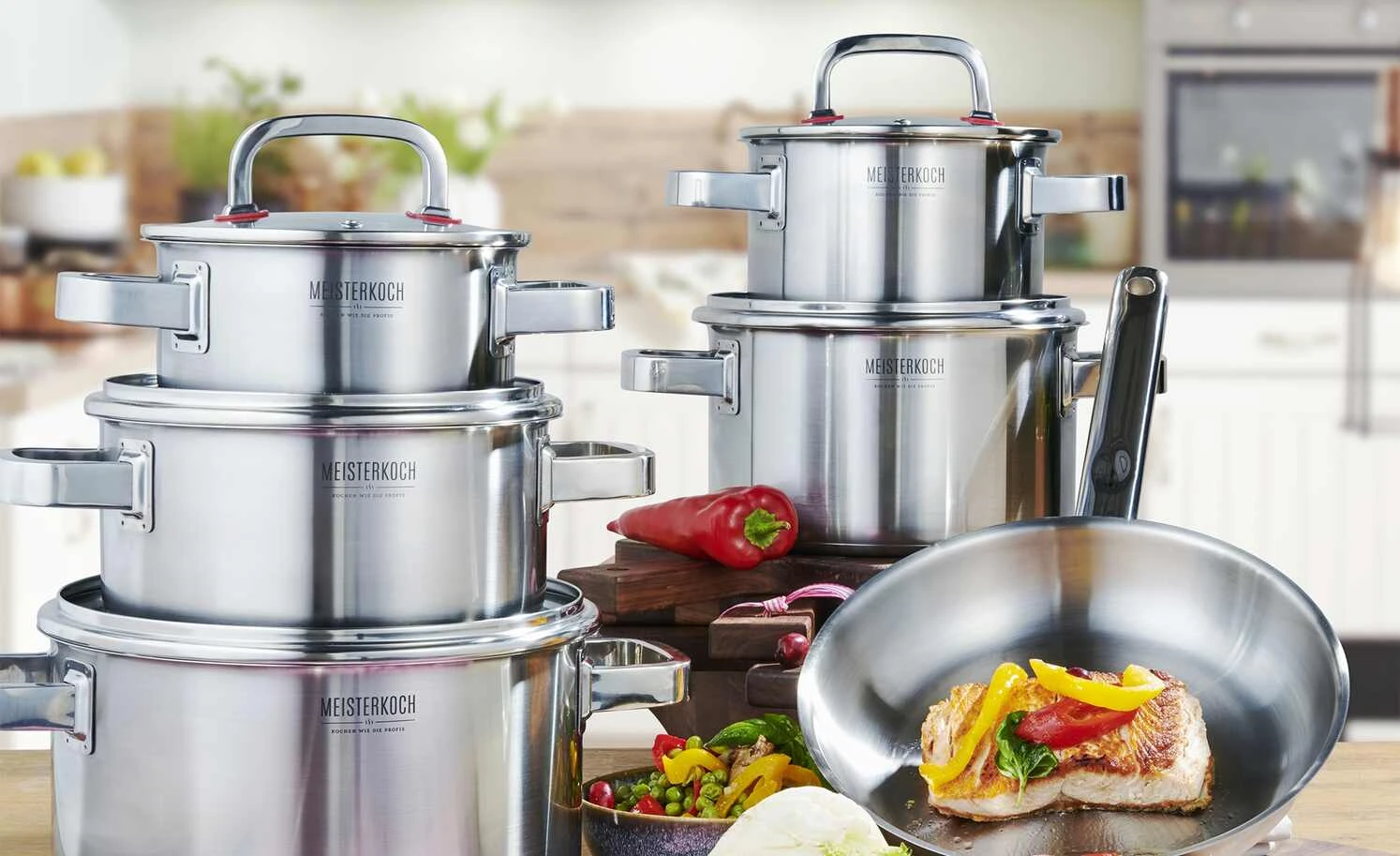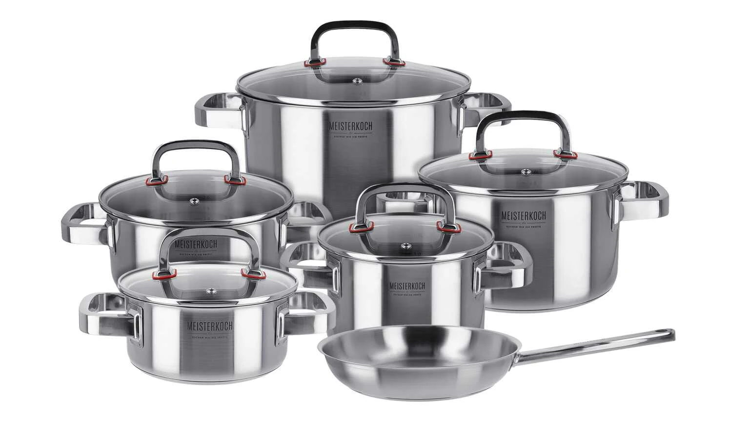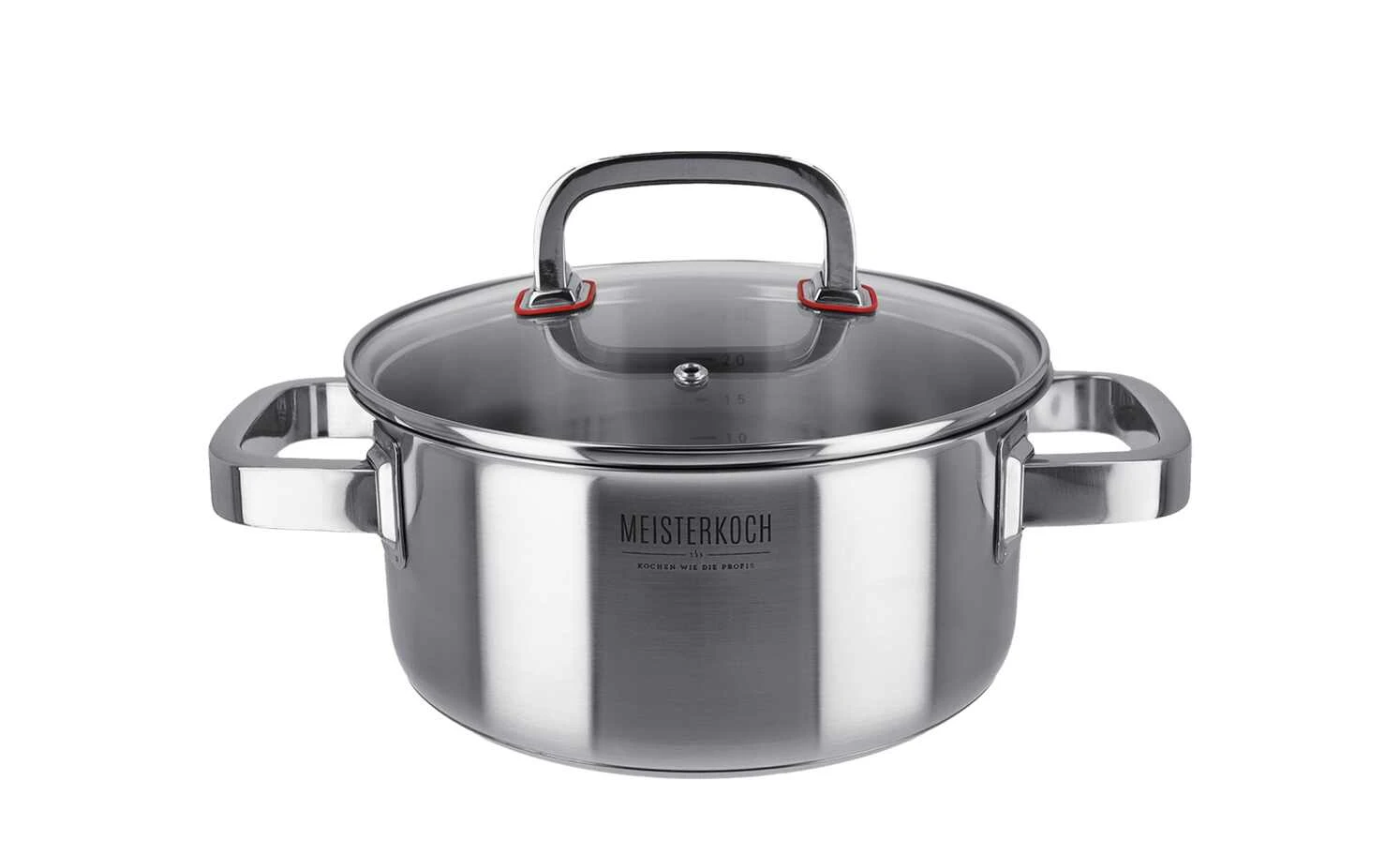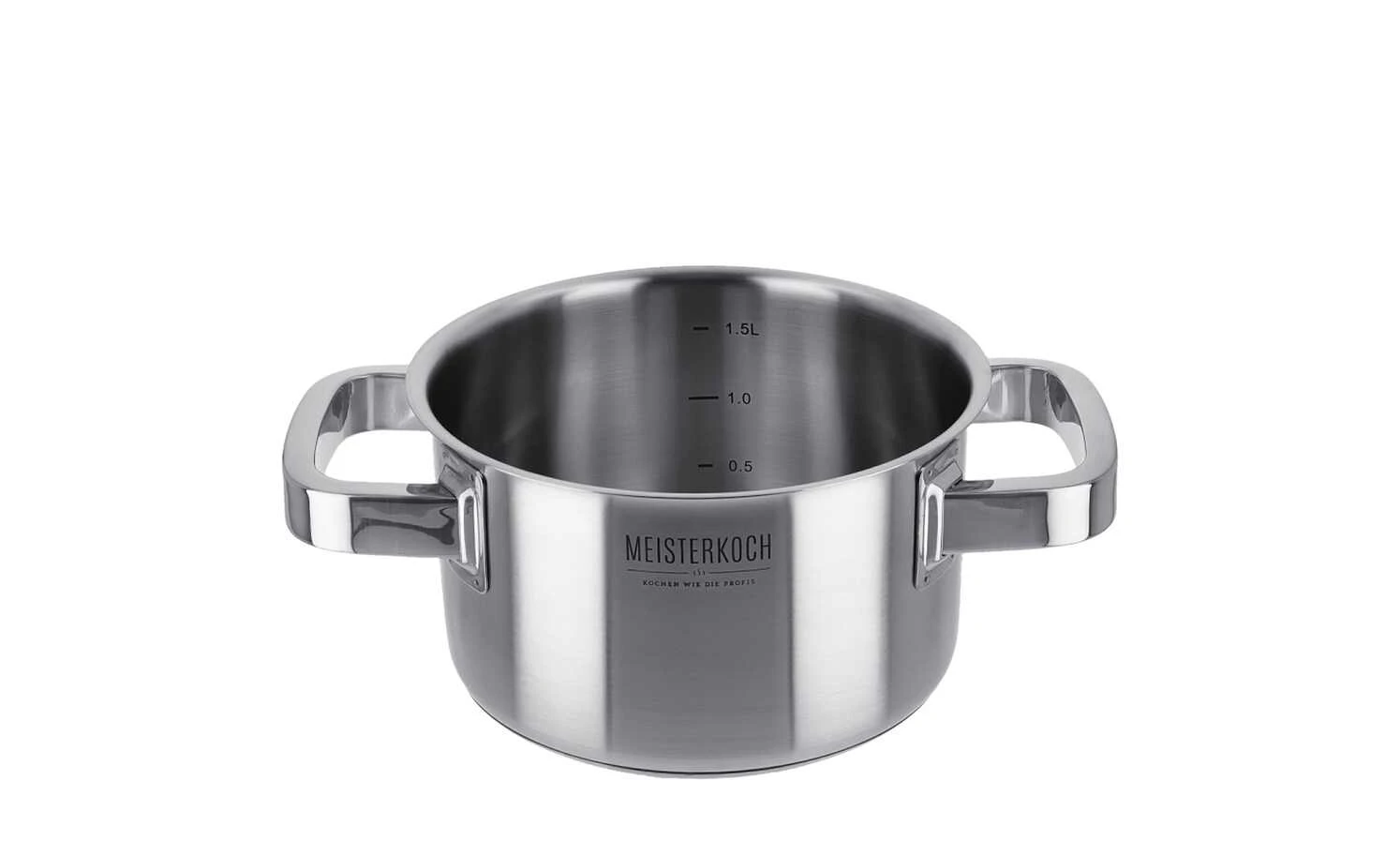 Mit dem Topfset Focus von Meisterkoch zaubern Sie im Handumdrehen leckere Mahlzeiten. Zu dem Set gehören fünf Töpfe in unterschiedlicher Größe und eine Bratpfanne. Alle Töpfe und die Pfanne werden mit Glasdeckel geliefert. An der Innenwand der Töpfe befindet sich eine praktische Innenskalierung, auf der Sie die Literzahl ablesen können. Das Set besteht aus hochwertigem Edelstahl.