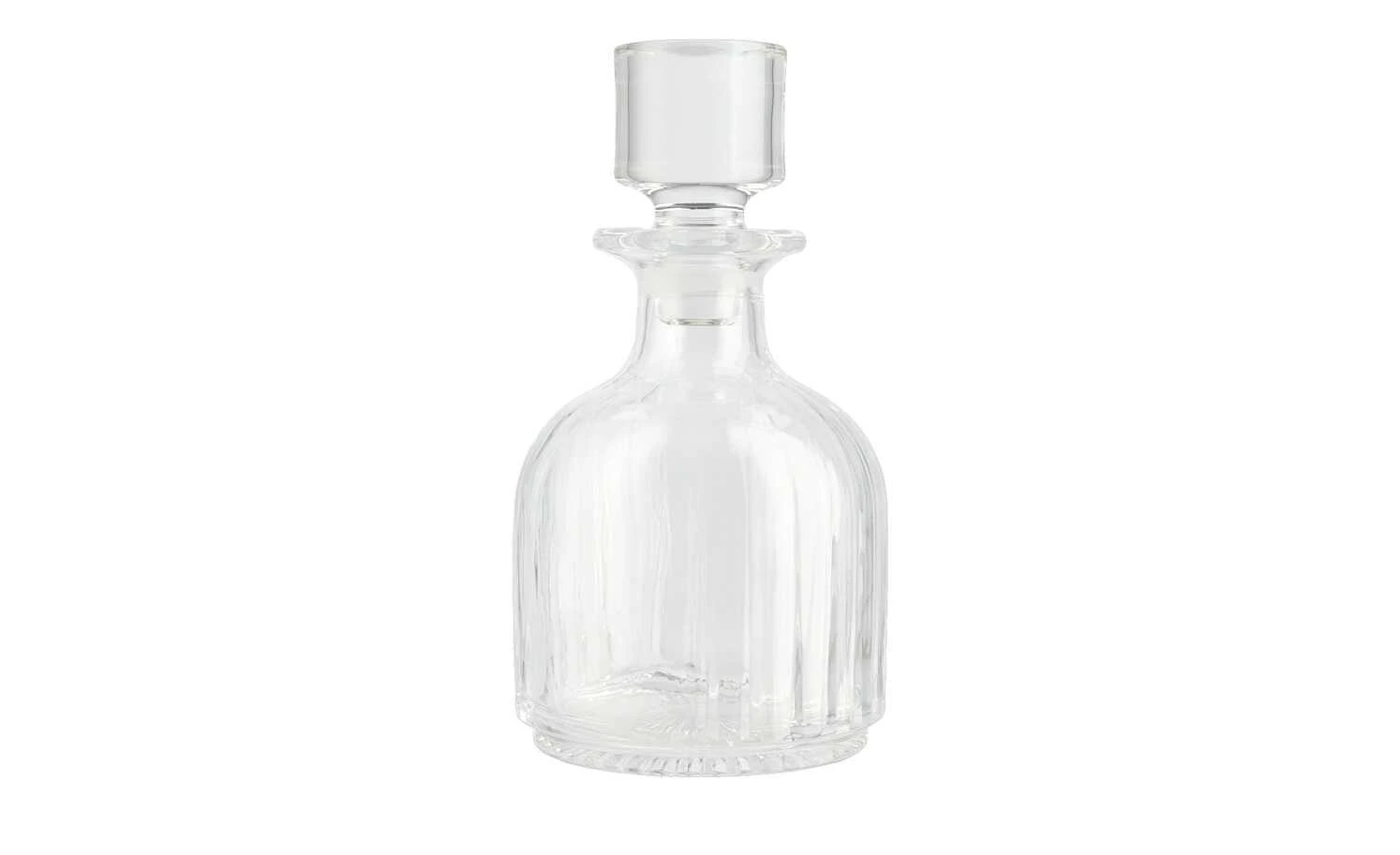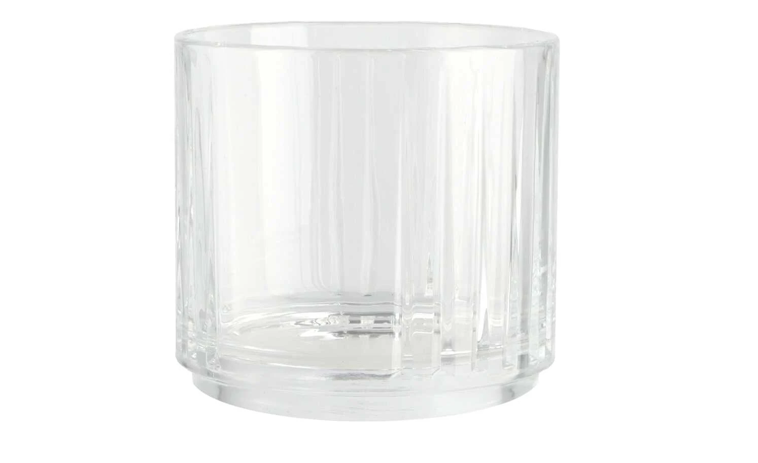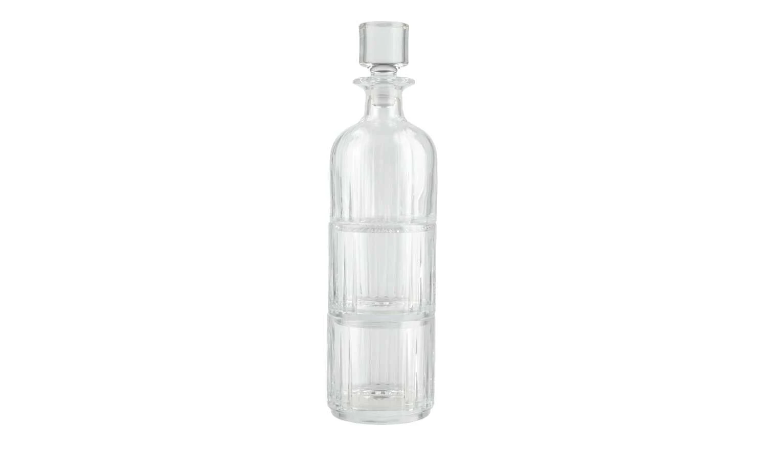 Das Set ist aus transparentem Kristallglas gefertigt und besticht mit einem schlichten Streifendesign.